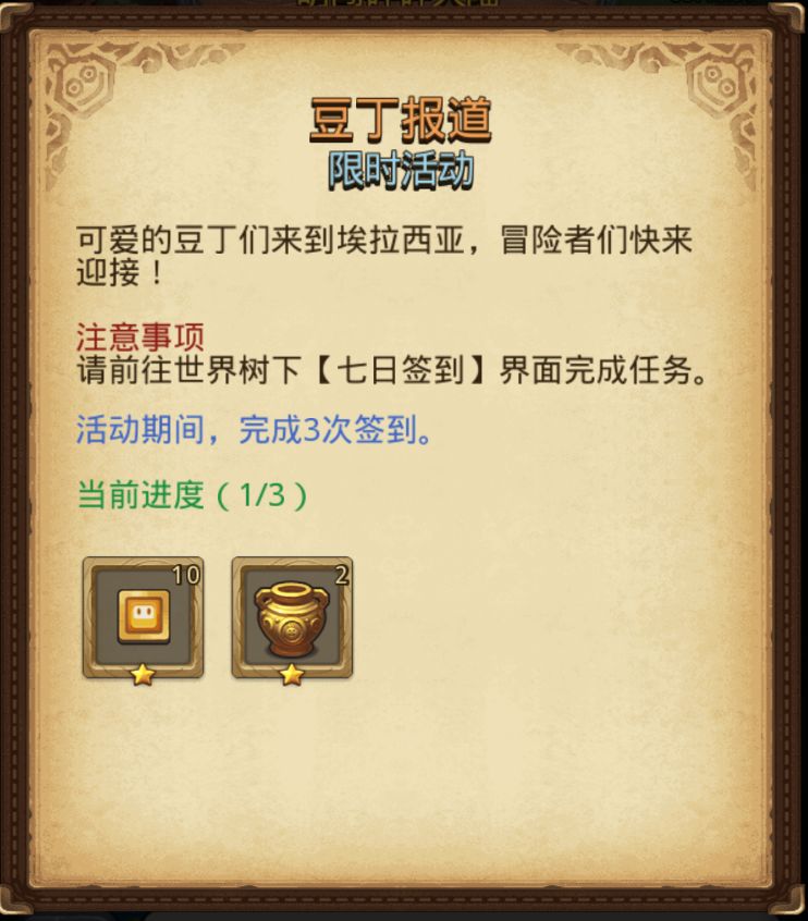 联动期间前往世界树签到签到三次