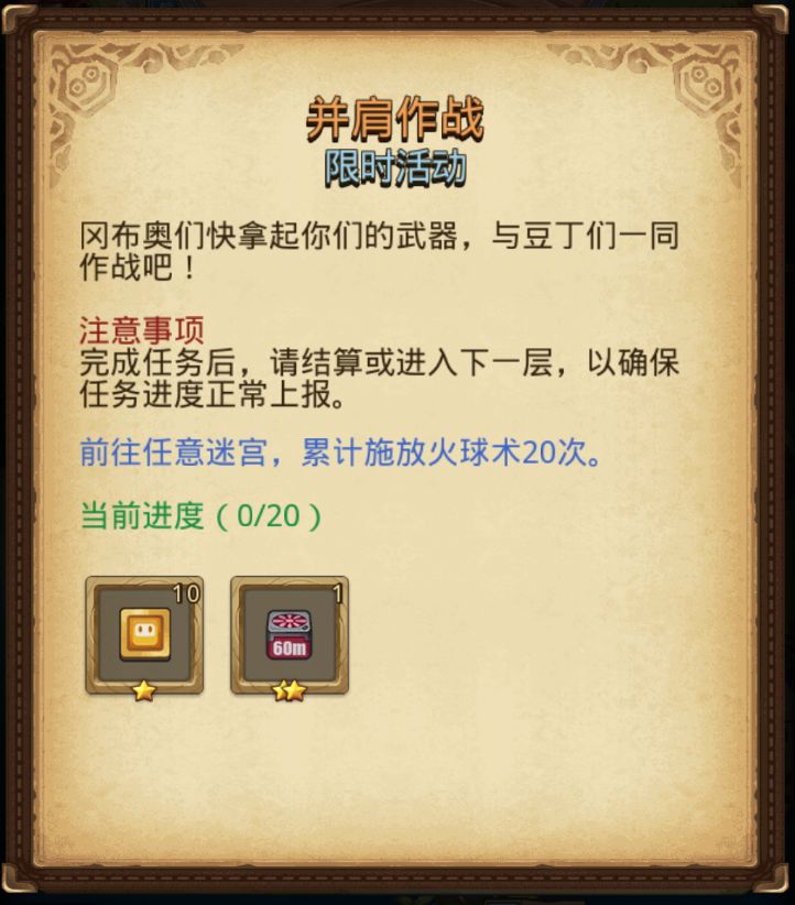 前往任意迷宫累计施放火球术20次