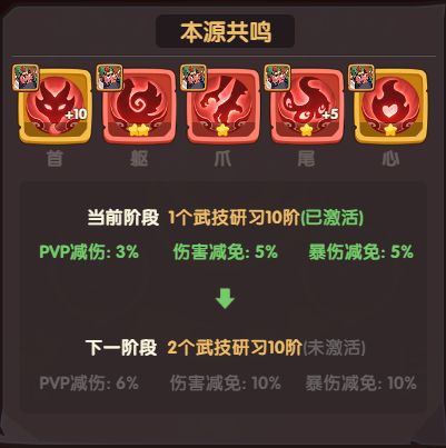 ②当指定数量的本源武技研习到相应等级时,则可获得共鸣属性,带来稀有属性提升。不同部位给到的研习天赋不同,前期研习千万不要平均升级,按本源共鸣阶段需求,一个一个升,实现战力实时收益。