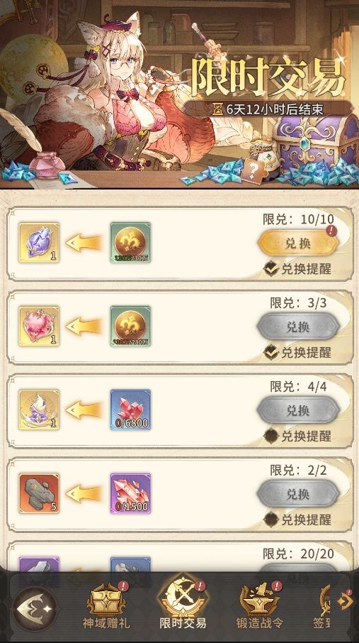 活动内容:可使用相应材料换取其他珍稀材料。