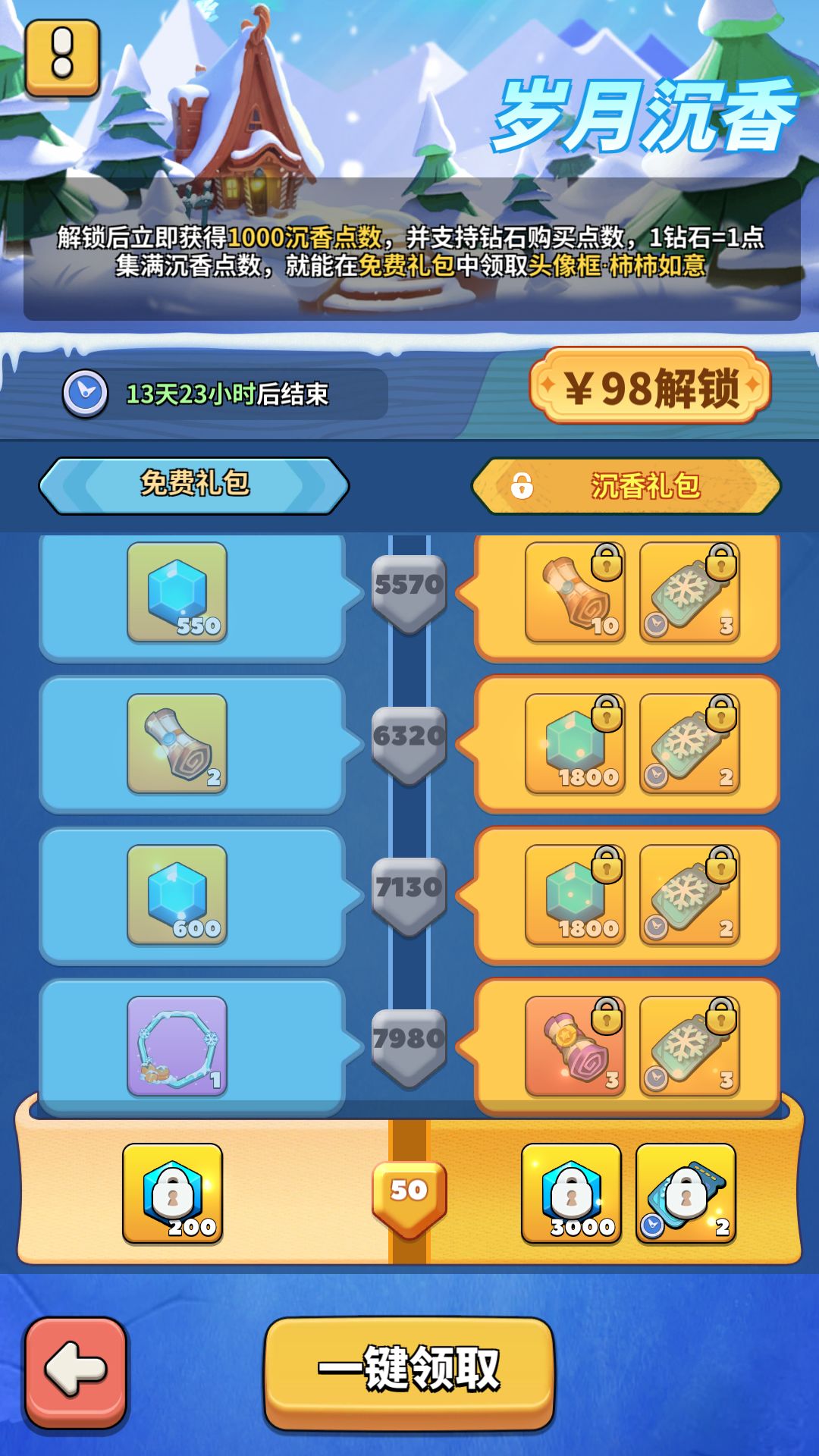 活动期间,可通过多种途径获得沉香点数。积累沉香点数达到指定数量,即可领取免费礼包的奖励。只要集满沉香点数,就能在免费礼包中获得头像框·柿柿如意!沉香礼包的奖励需要付费解锁后,才能领取。解锁沉香礼包时,直送1000点沉香点数。已经解锁沉香礼包、在活动结束前48小时还未领取全部奖励的领袖,可通过钻石购买沉香点数。