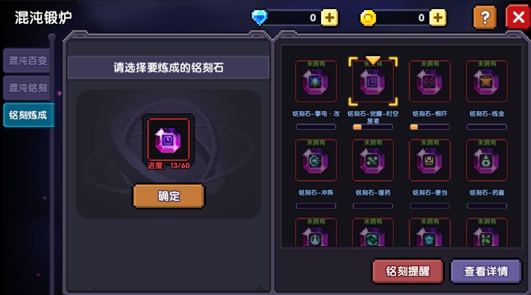 3.新增“铭刻提醒”功能,设置提醒后会置顶排列,当铭刻石可以炼成时,会出现红点提醒