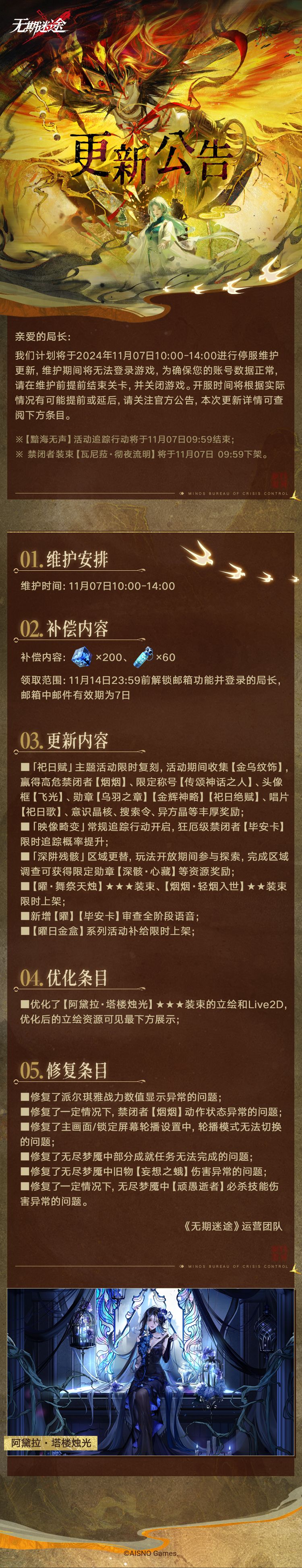 【公告】丨11月07日停服维护更新公告