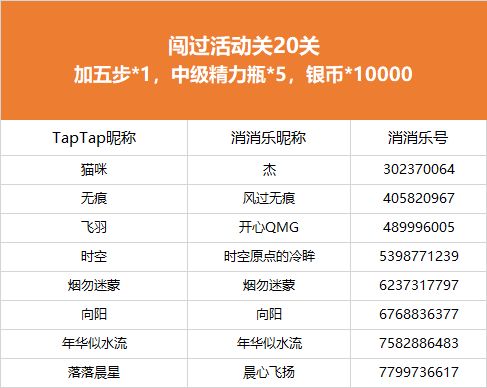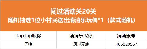 加五步*1,中级精力瓶*5,银币*10000,并从中随机抽选1位小村民送出消消乐玩偶*1(款式随机)