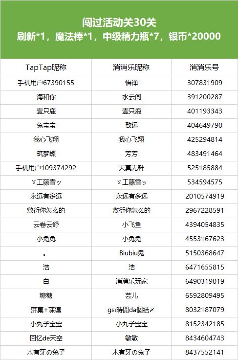 ※例如:我闯过第8关啦~我的消消乐号是:xxxxxxxxx