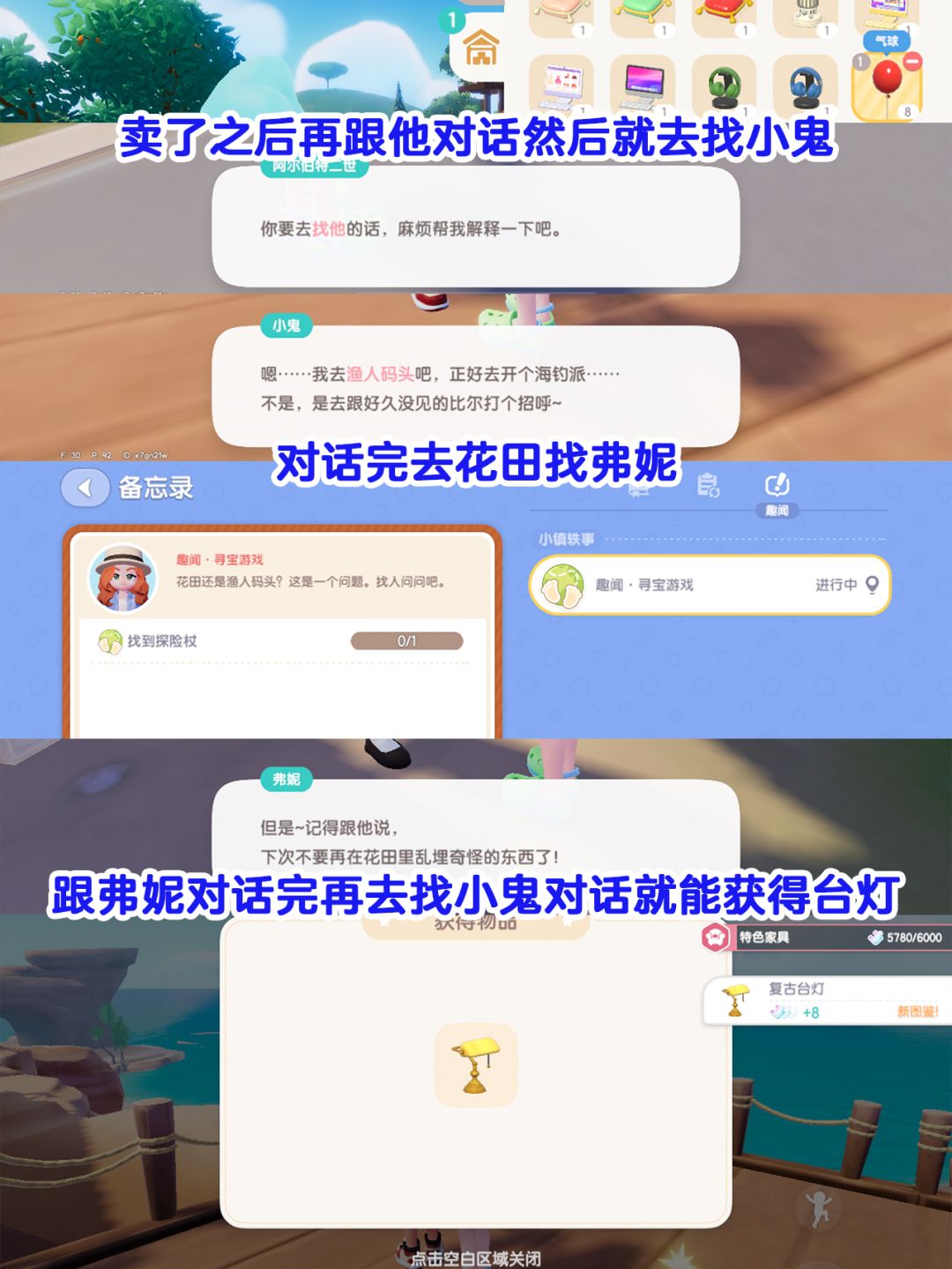 4️⃣然后去找二世子,对话完卖一个气球或者值600的东西给他