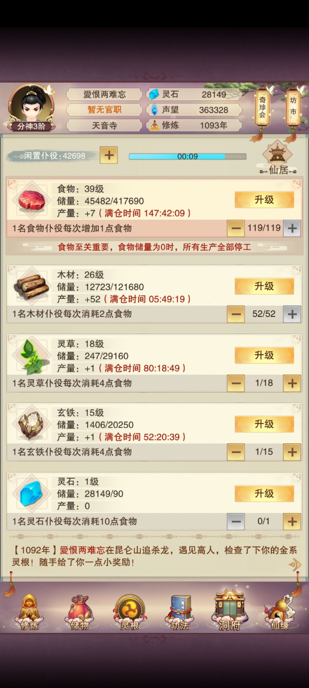 ,继续升139,不过要先提升一下草铁等级了。
