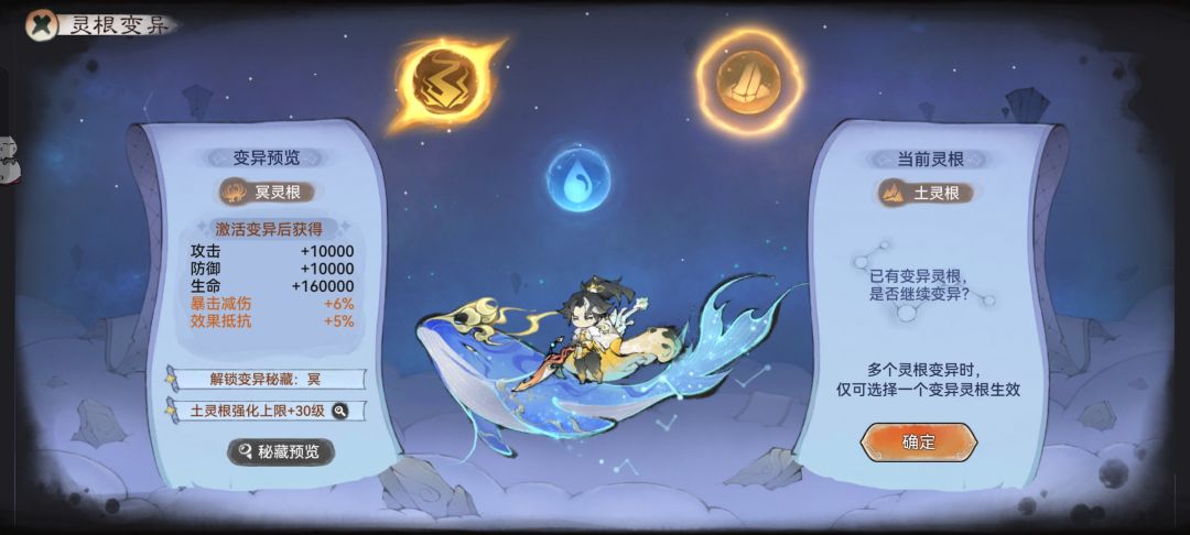 (2)适用场景:如果你的阵容中缺乏前排坦克,或者需要卫寒在前排承担一部分伤害输出和抗伤的任务,那么选择土灵根变异也是一个不错的选择。土系功法的特点是高倍率的群体攻击,例如负岳剑诀(高倍率)、元磁刀谱(高伤、减攻、法宝封印)等功法,能让卫寒在具备一定坦度的同时,也拥有不俗的输出能力。不过在当前输出至上的游戏环境下,一般不推荐变异土灵根。