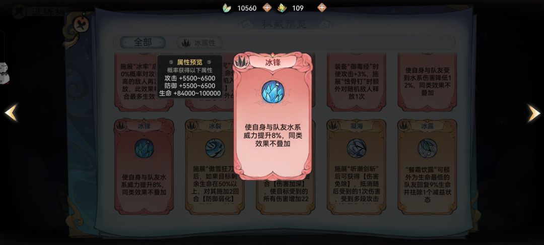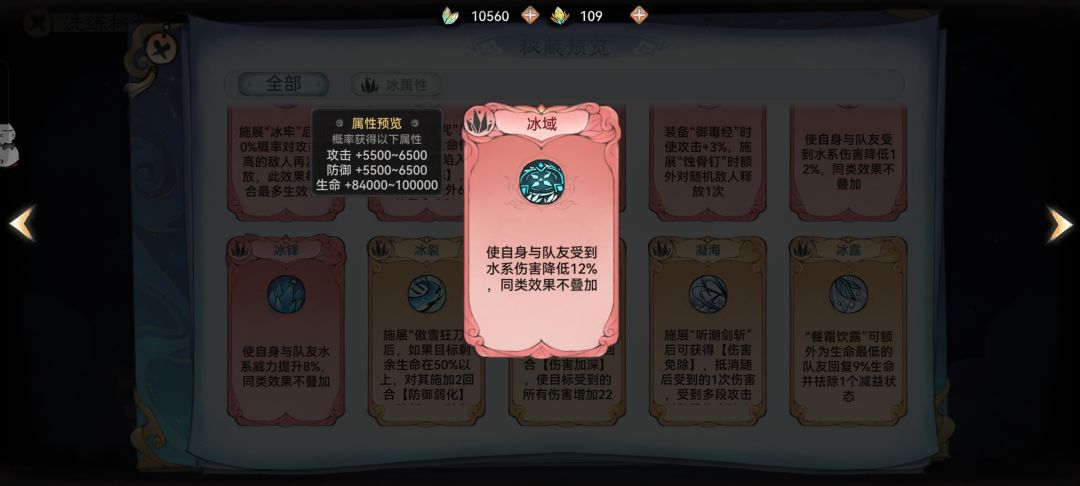 (3)秘藏:冰系变异秘藏冰锋及冰域,可以有效提高自身及队友水系威力或者水系抗性。