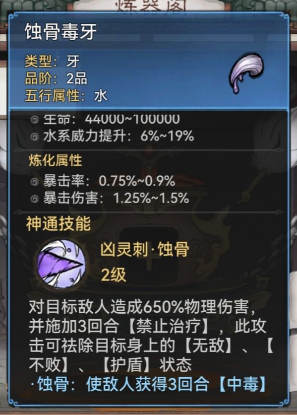 (2)2阶毒牙(水系副法宝次选,缺点是蓄力值过高)