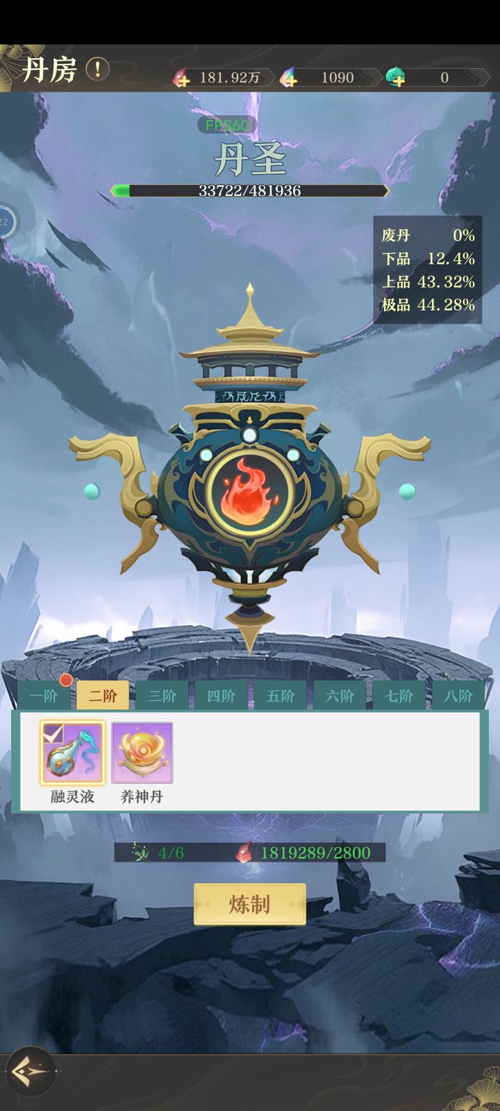 玩了两个月,整理出一条通天大道爆丹流,开局就炼丹,主打一个磕药流,开局什么都不买就买一二阶融灵丹种子,以为不管多少阶丹药经验都一样一阶收货速度快两星期左右至少都是6阶炼丹师一个月保底7阶我7阶到八阶就用了一个星期彩石用来买火晶,火芯不用买化神左右休息转盘根本用不完,灵台嫖就行了,到了八阶就可以买八阶丹药再存灵髓,当别人还在五阶六阶你就已经八阶而且成功率还很高上线就搓丸子五个八阶丹药保底100w经验