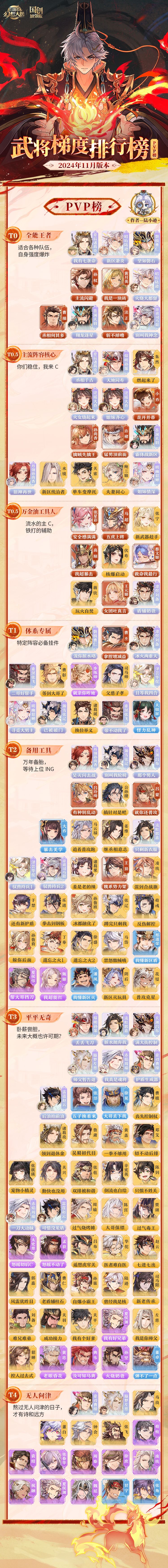 玩家攻略丨谁是PVP全能王?武将梯度排行榜第17弹(PVP篇)