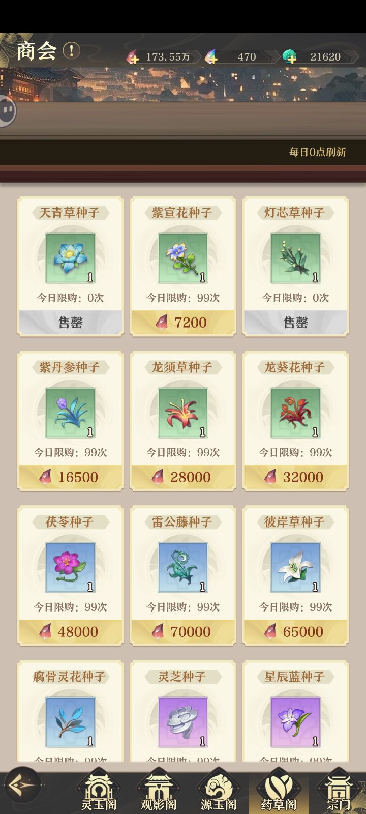 灵石建议购买一、二阶融灵液药草种子,不建议炼器升级装备,战力加成极小。
