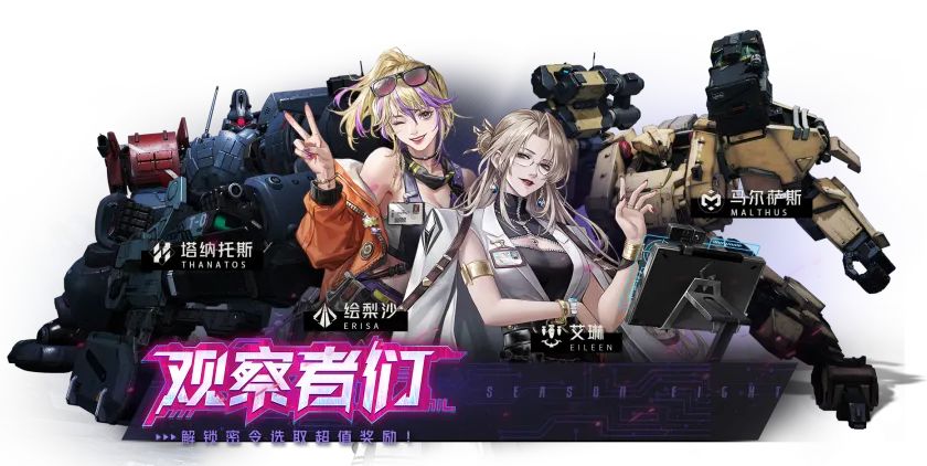 那么这次的通行证有大家过去曾翘首以待的艾琳+马尔萨斯,额外还有绘梨沙+塔纳托斯的组合,那么针对这两位角色和她们的专属机兵,维一这里还是稍作个简要的总结吧: