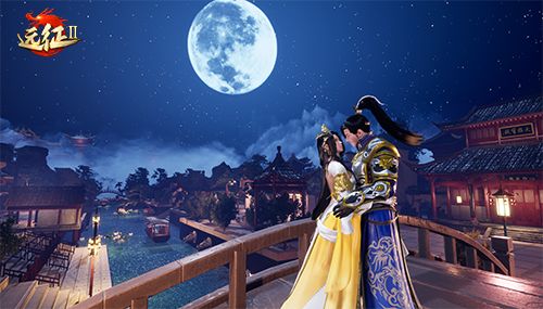 月圆。万家灯火,星辰低垂,一对情侣相约在拱桥上。男子拥女子入怀,那缠绵的动作让看客不禁猜想,莫非是才在月老处登记情缘,刚刚成为爱侣的一对?