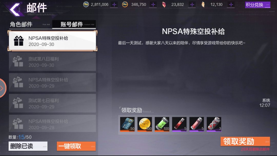 不愧是要关服的一天,邮件里送了终极福利,“高级疲劳药剂”很香啊,不过距离关服就6小时不到了,看来最后的时间反倒要肝一些了(不知道能争取到55级不)。希望下次测试的话,疲劳药剂能每天发一点,可别集中在最后一天了。