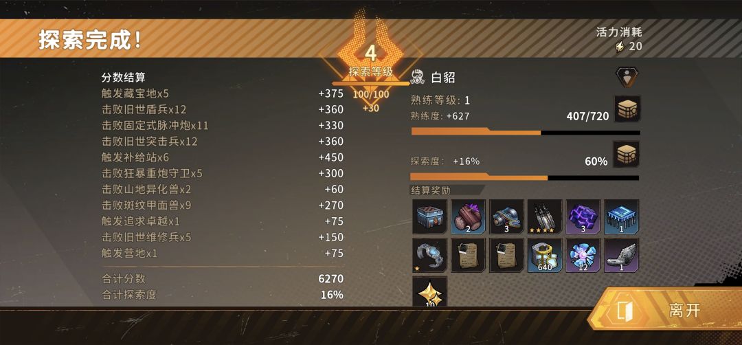 第一关荒漠实验室难度不高,不知道有没有机会一次加50%探索度来解锁第二关失落小镇。
