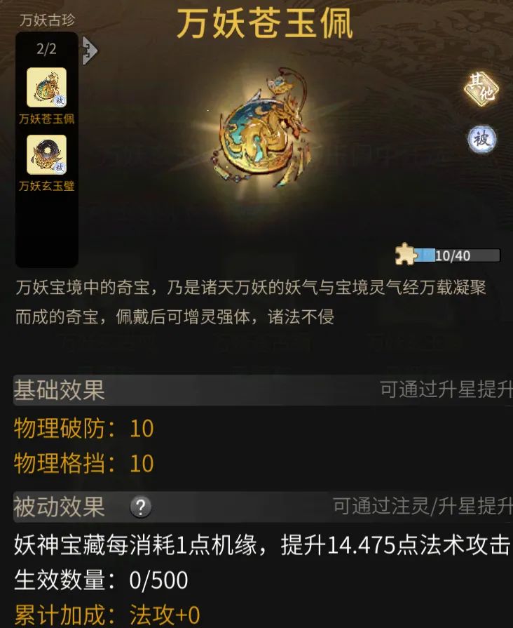 ●新增古宝万妖玄玉璧、万妖苍玉佩