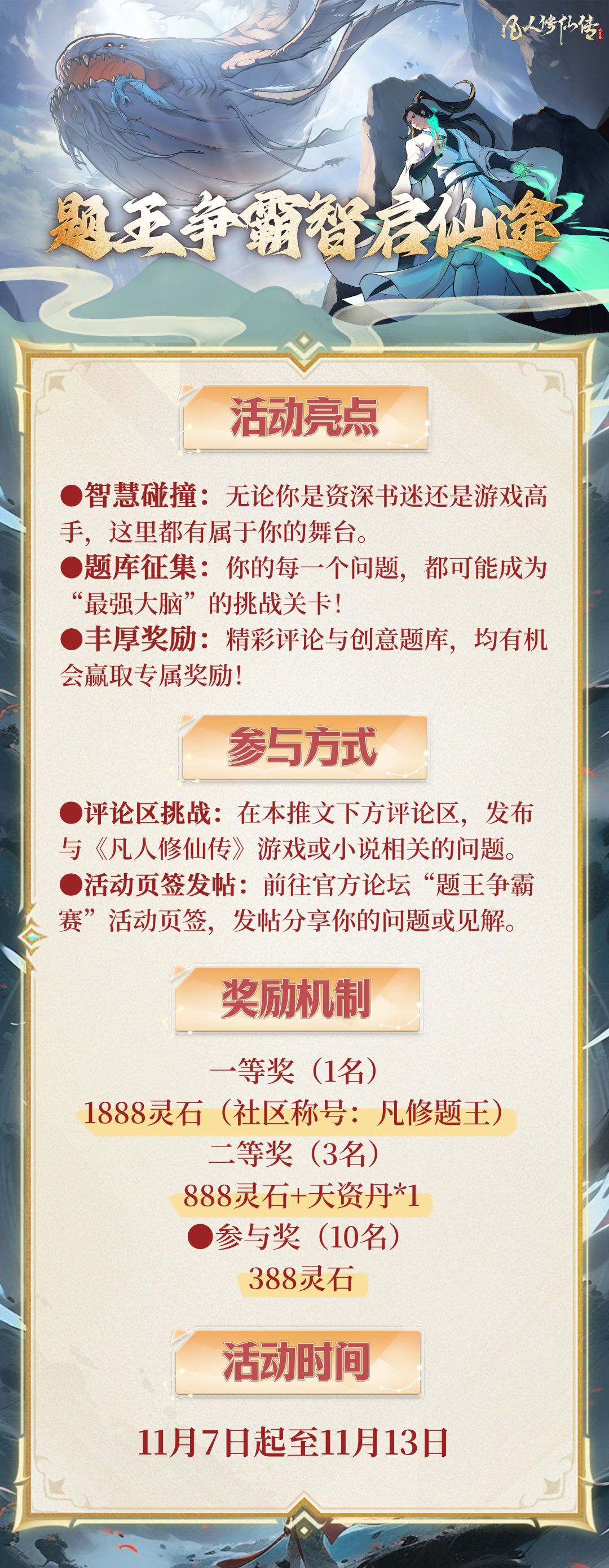 【题王争霸,智启仙途!】道友出题来领奖!