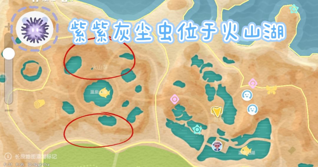 紫紫飘飘灰尘虫:位于温泉山——火山湖,靠近温泉山湖的路边也会刷新