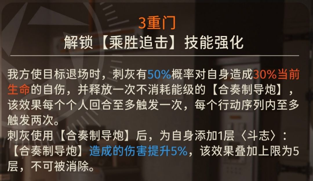 刺灰非常依赖于被动『乘胜追击』打输出,所以大招倍率显得不会太高,甚至只有约净天大招的一半倍率。
