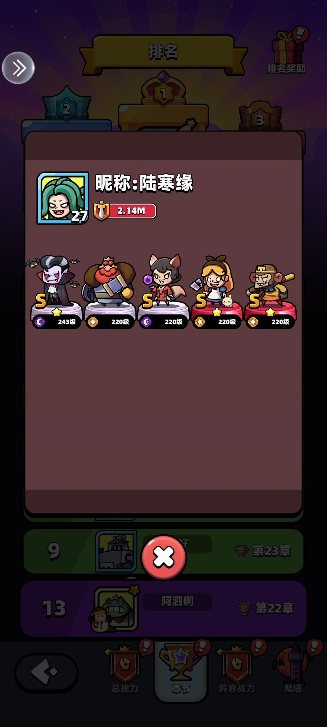 我用的是三暗俩冰,主C,德古拉和海妖女皇,升级也是优先升级这两位。氪了白雪公主的可以带白雪公主,没有白雪公主的建议带铁皮人,很好用。再带上灰姑娘和拇指姑娘,这两个的队长技一个加全队30%暴击,一个加全队45%生命,都是非常好用的技能。