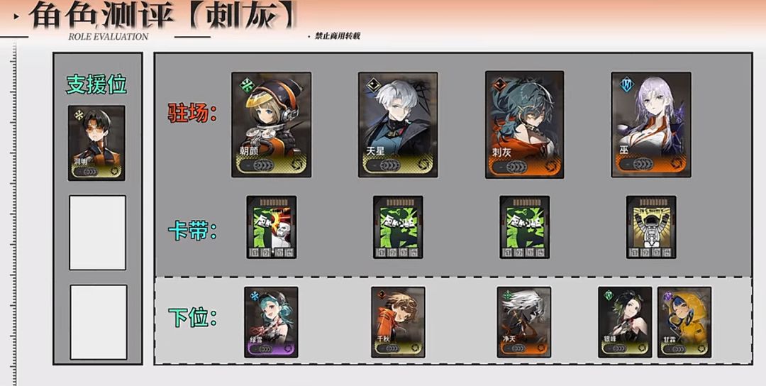 每次释放时都能稳定叠加两回合的保伤提升,同时,还可以对敌人造成最大生命值伤害,需要注意的是,只要六段伤害内有任意一段暴击,即可触发锋锐词缀的效果,除此之外,在后续解锁高级认证后,该技能的能级消耗将从30变为20,刺灰的普攻会对选定敌人,造成150%倍率的特殊伤害没什么特殊效果,支援技能算是个简化版超限技,对全部可选敌人造成380%倍率的特殊伤害,同时还会根据目标以损失生命值来提高伤害。