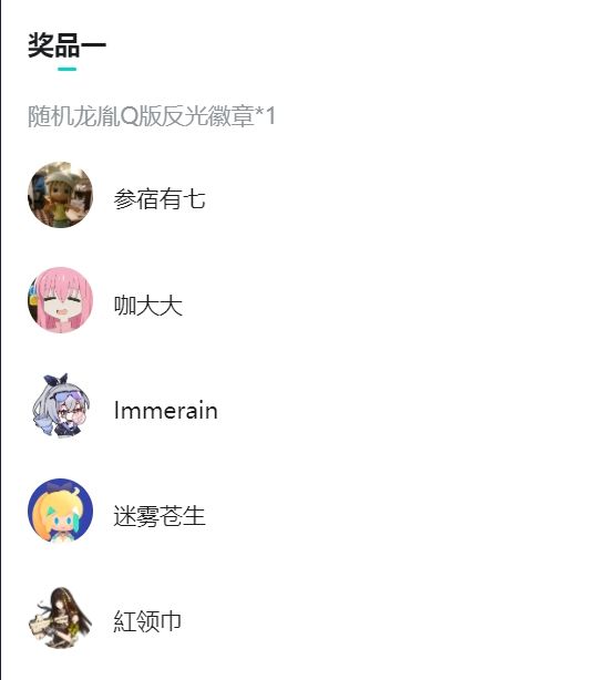 恭喜以下导演在本次活动中获得【【随机龙胤Q版反光徽章】*1 ,请在12月16日前于TapTap后台填写准确详实的【个人收货信息】,如逾期则获奖资格作废。