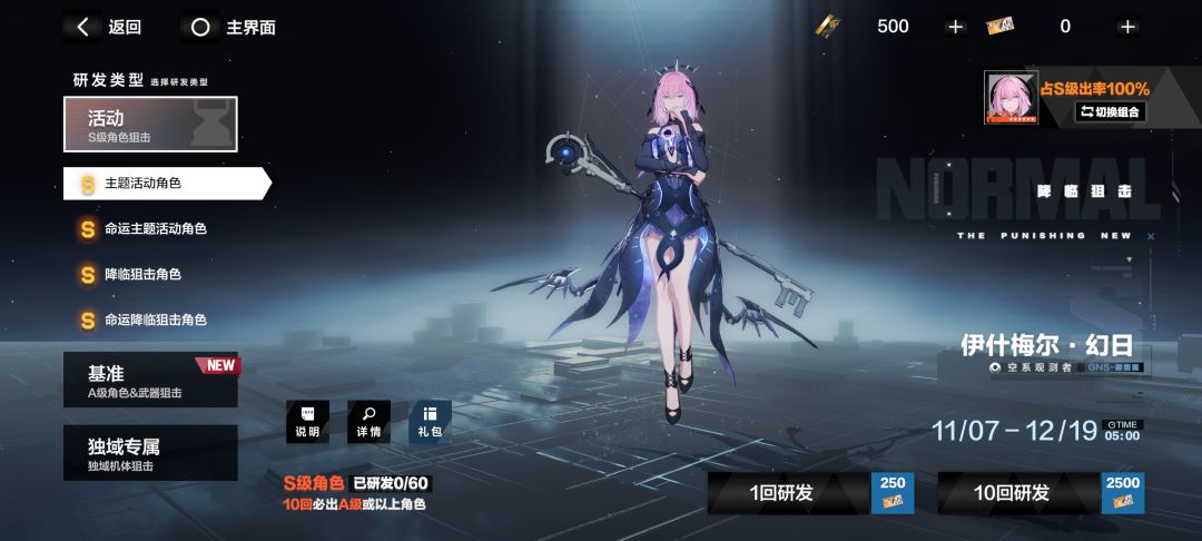 检定池即新手池,玩家选定一名S级角色进行抽取,保底40抽即可获取选定角色,这里新手玩家推荐露西亚·誓焰/露娜·终焉,他们分别是火队和空队的核心,搭配当期角色慈悲者就有不错的效果。