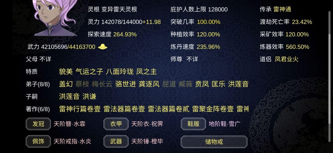 一周目实在是太痛苦了,但是二周目又太顺了点,矿脉,药田开了5,6片,每个点6帮手,丹峰开了两个,炼器基本不炼全靠舔狗送和自己捡。