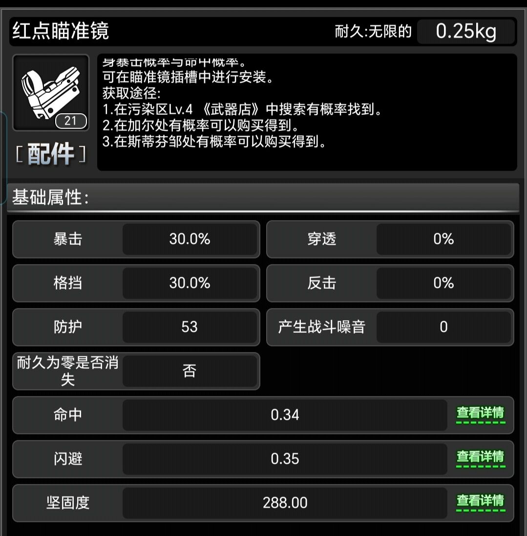(下方是获取方式与属性,暴击率与格挡为当前版本显示错误,实际为0)