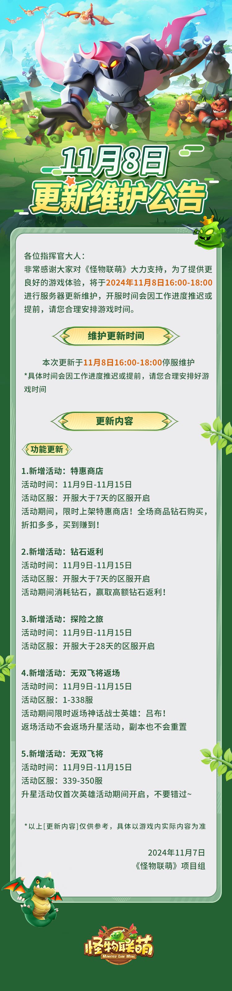 11月8日更新维护公告