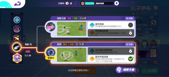 仙子伊布拥有强大的特攻技能,推荐携带物带增加伤害和特攻以及吸血,道具带加移速风筝敌人,技能我推荐狐火和冥想或狐火加吸取之吻,这两个技能都是指向性技能,只需在敌人身边风筝即可,保持距离就能发挥你最大的优势。