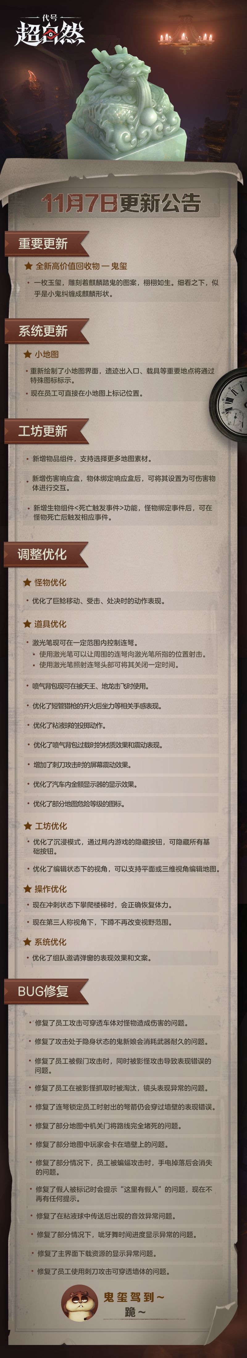 【11月8日新增小地图优化】11月7日更新——麒麟踏鬼,玉玺现世