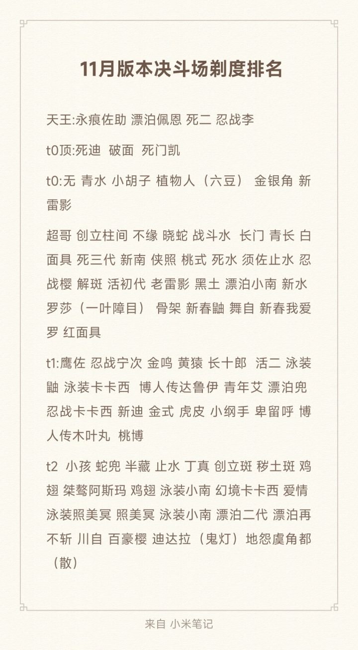 十一月份决斗场忍者强度排行预测