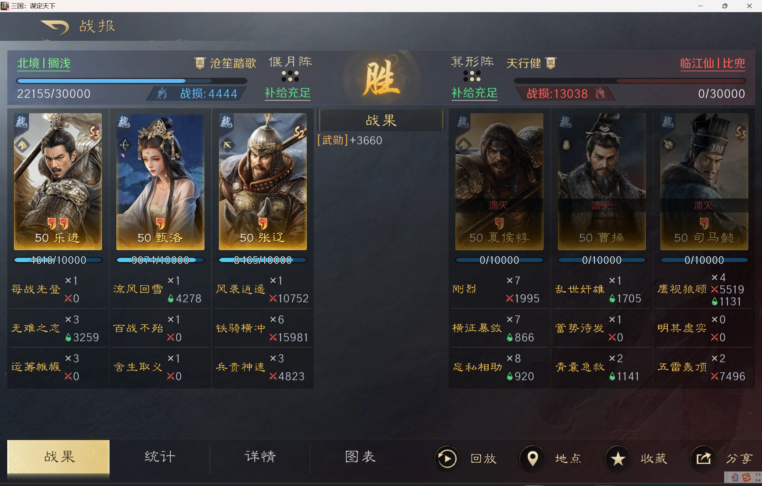 乐进战法:每战先登+无难之志+运筹帷幄。