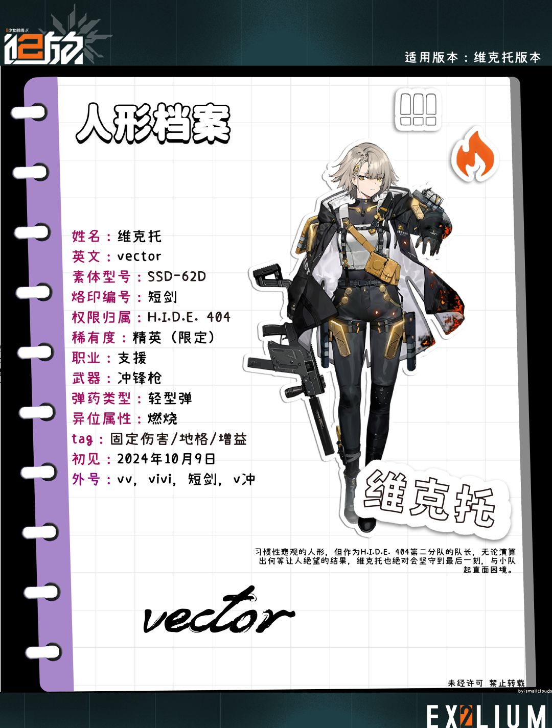 习惯性悲观的人形,但作为H.I.D.E. 404第二分队的队长,无论演算出何等让人绝望的结果,维克托也绝对会坚守到最后一刻,与小队起直面困境。