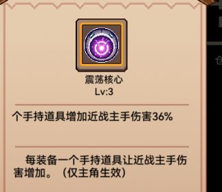 秘宝:震荡核心的词条“每装备1手持道具则增加80%近战主手伤害词条”