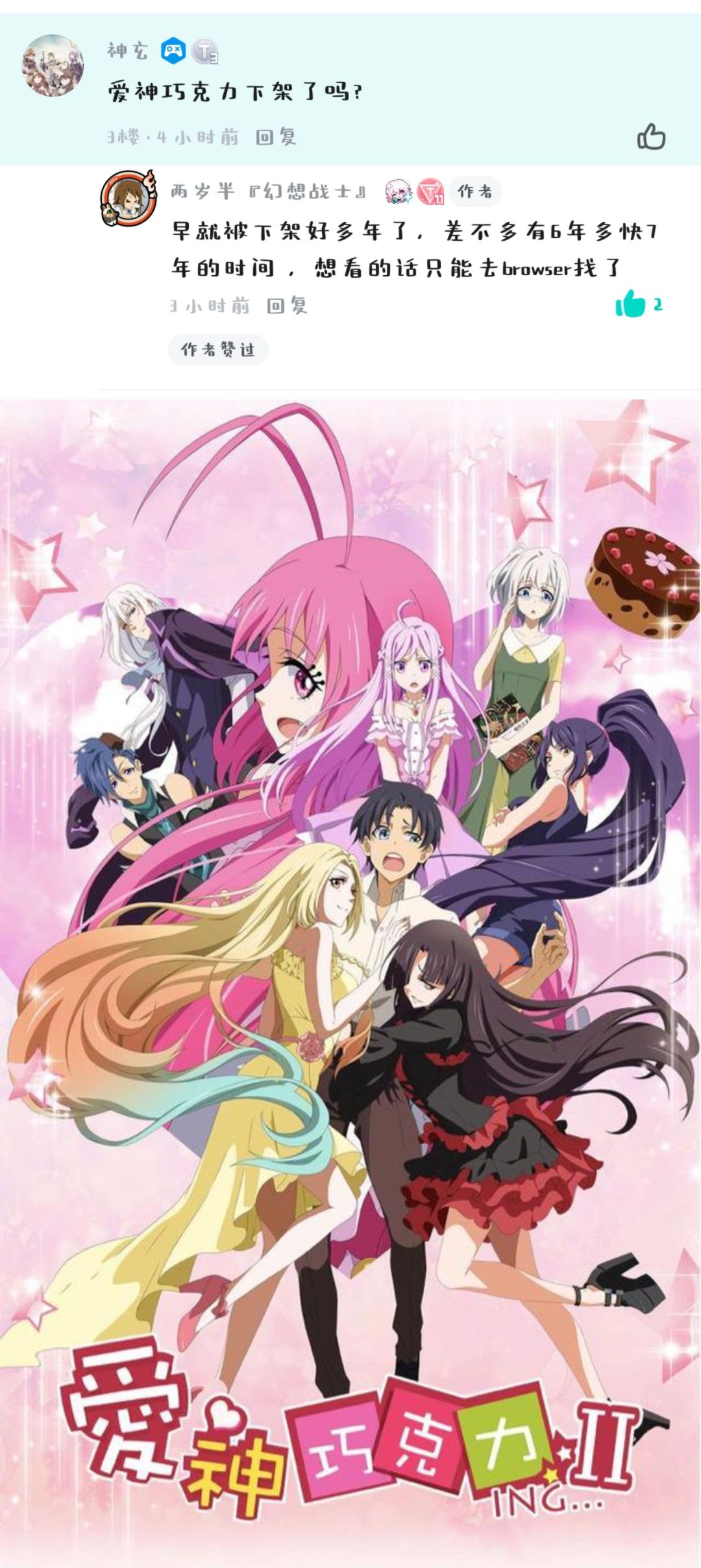《爱神巧克力》共两季,在2018年7月26日之后被下架