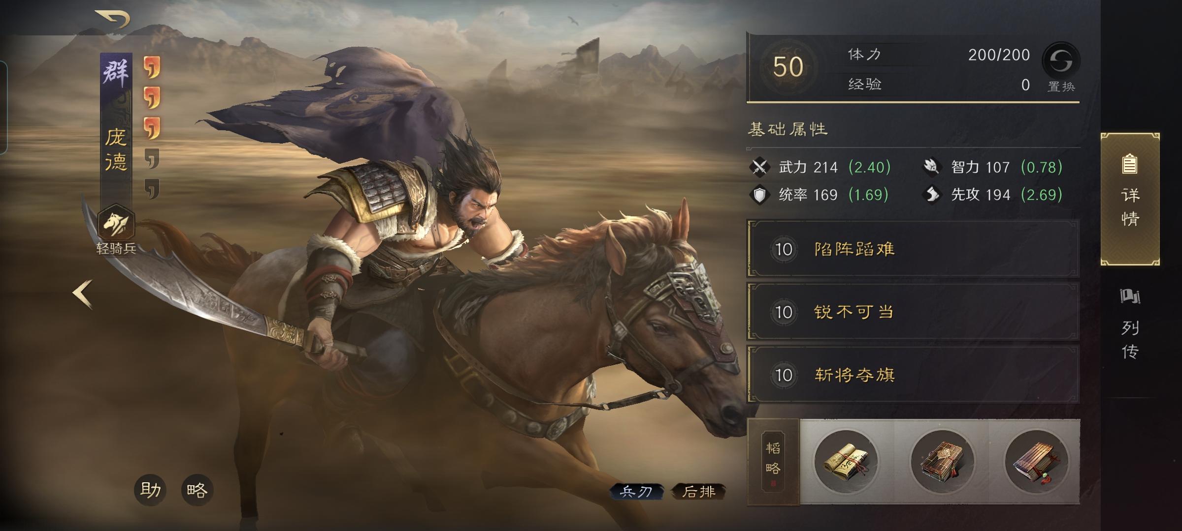 庞德战法:陷阵蹈难+锐不可当+斩将夺旗。
