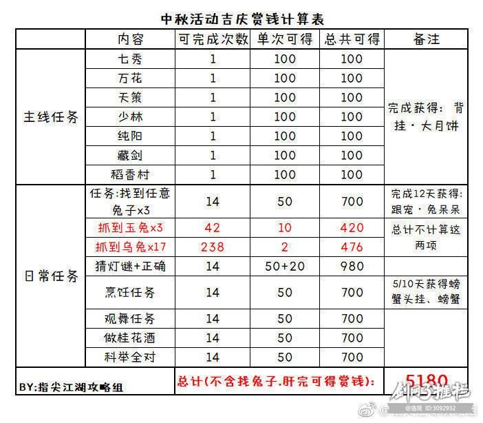 《剑网3:指尖江湖》中秋最终总结攻略【兔子位置已更新】