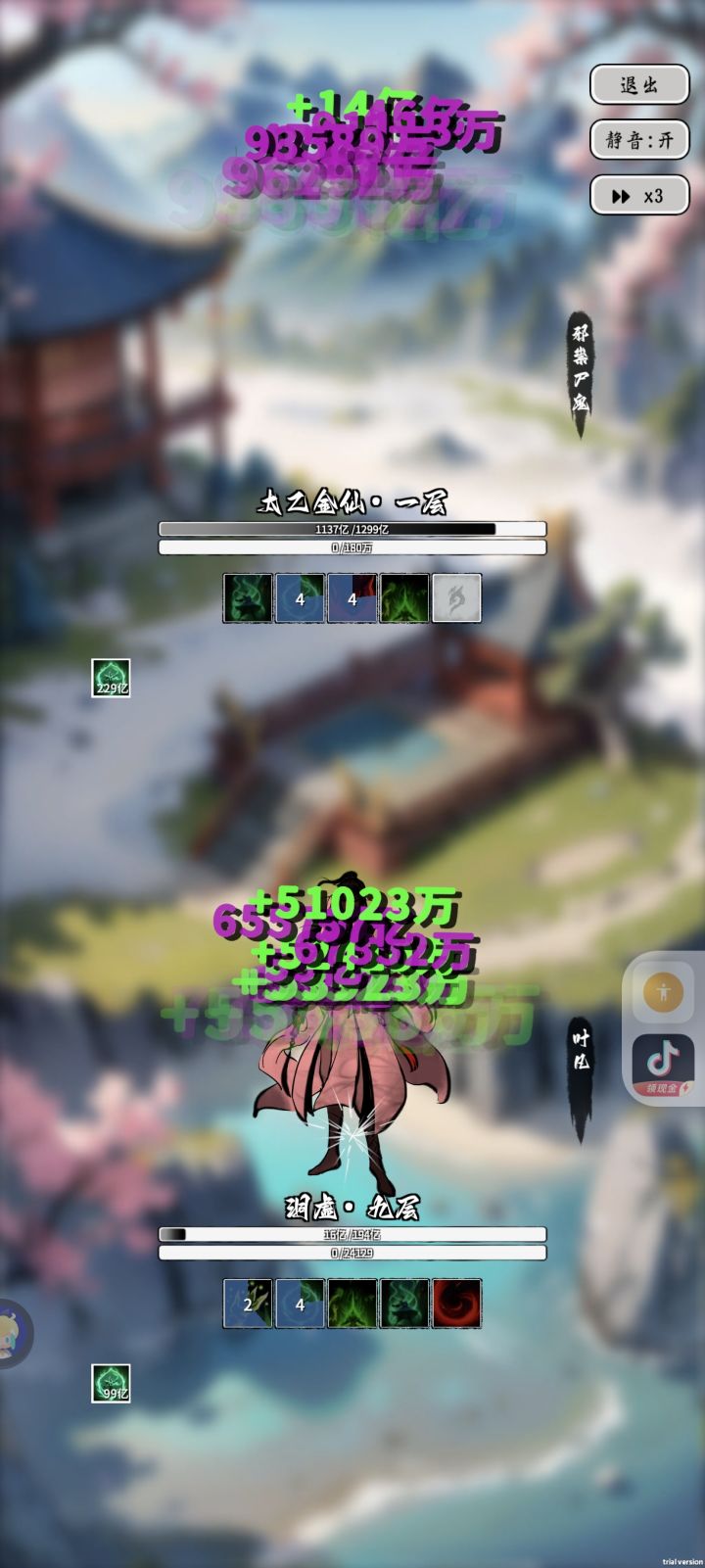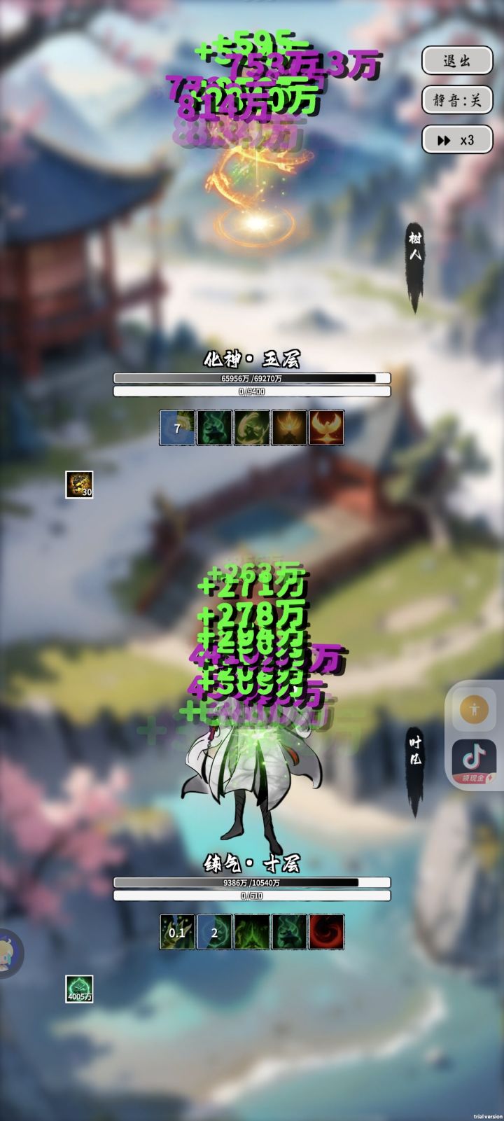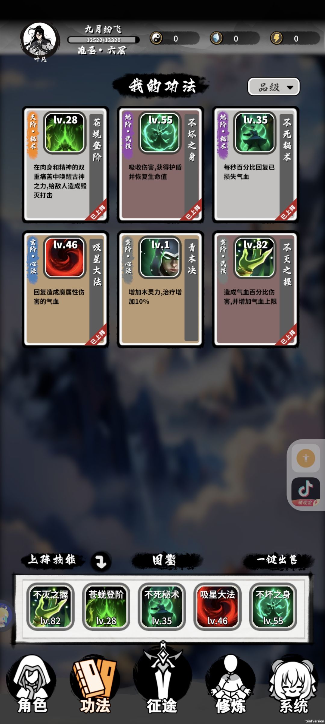 肉盾恢复流玩法总结:一直堆混沌道体,保留图中五个技能叠就行,根本死不掉,血量还越来越厚,直接上准圣,不需要脑子适合新手玩家,后面的话可能要不断转生