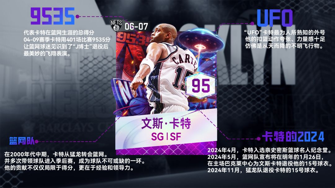 【经典篮网】卡池已经上线,“基德”、“卡特”两张紫卡球员相信大家也已经上手爽玩过了。我们也为这些球星设计了独属于他们的球星卡面!这些卡面之中既有这些球星的赛季回忆,和他们的生涯故事彩蛋,希望Boss们看到这些设计和彩蛋也能够会心一笑,一起重回他们的巅峰时刻!