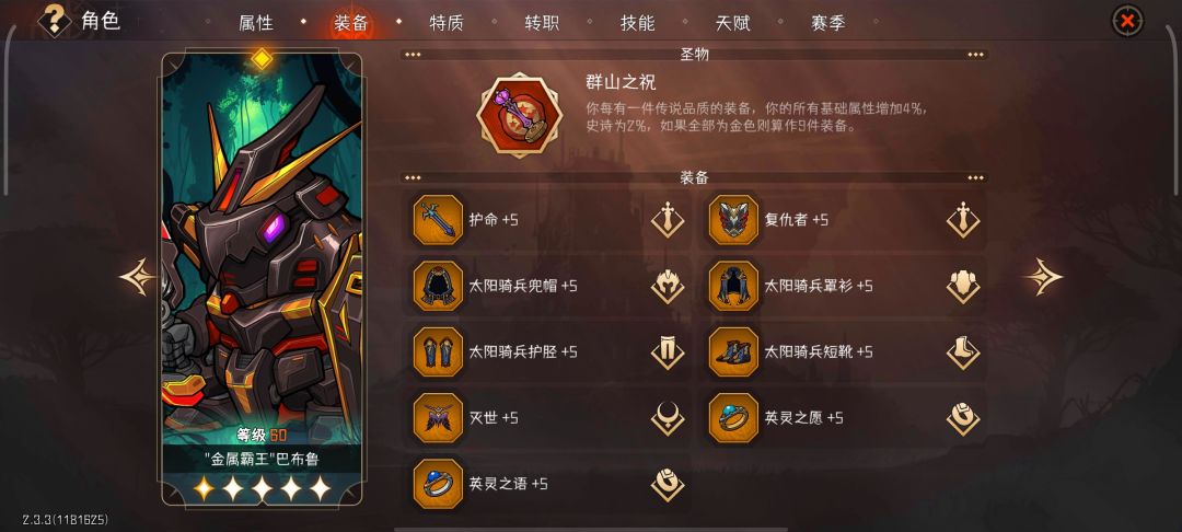 套装 太阳阳骑兵,搭配天赋移动力+1,减伤十分可观。
