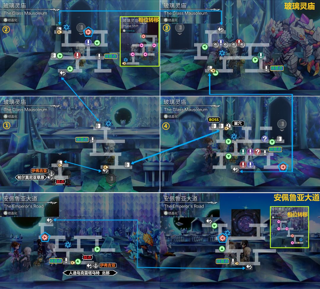 透明的晶叶-帕尔莫尼亚草原;内部已凋零的结晶-凋零园;带有强大魔力的矿石-旧魔法矿山街