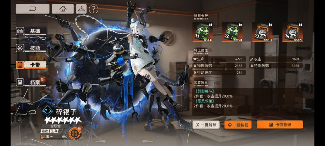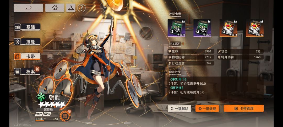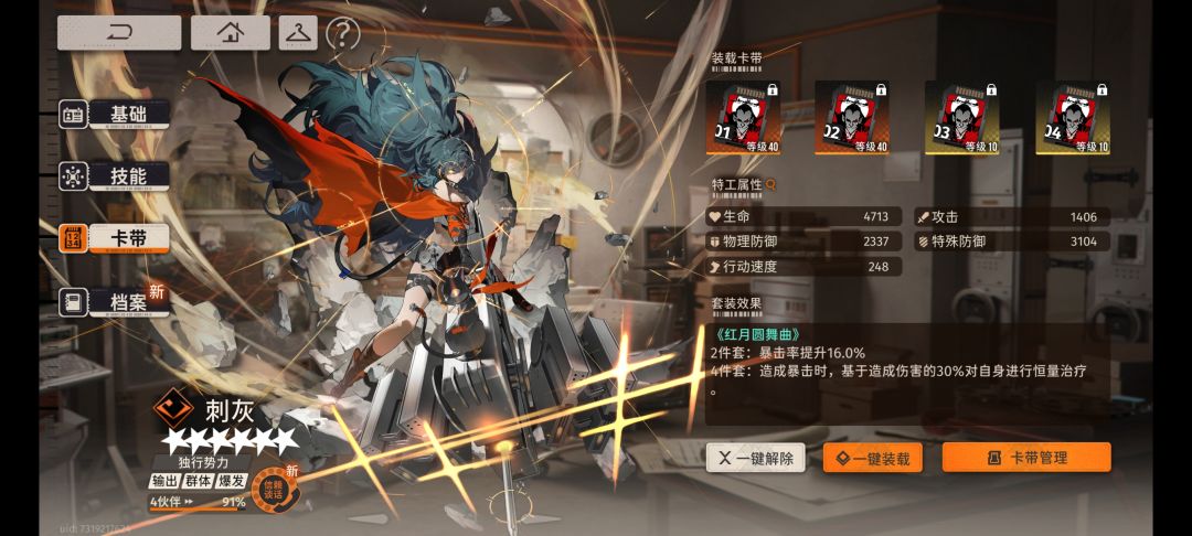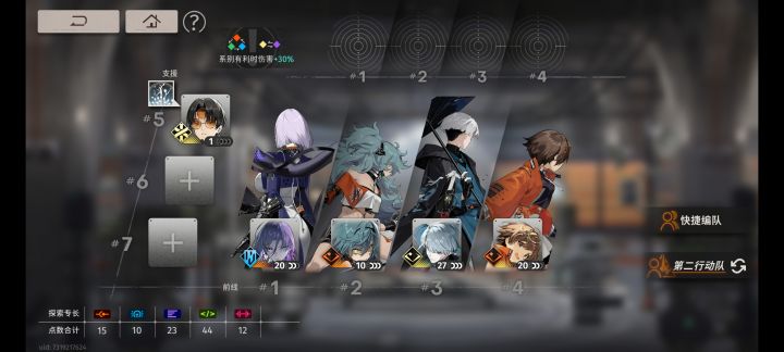 主线过渡推荐:忠元(生命2件套),刺灰(送的剪影4),千秋(攻击能效2件套),朝颜(攻击能效2件套)支援夜来(精1或者精2,只拉支援技)