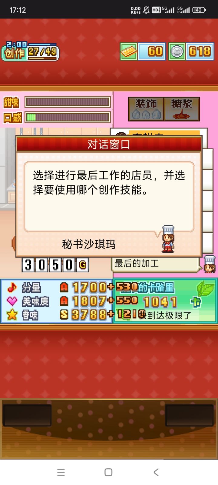在最后一次食材放下去的时候进行结尾,会卡出两次收尾菜单。