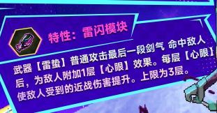 破灭之雷非常霸气的名字,效果介绍跟实战效果也都跟这个名字一样霸气,这个主动技能本身自带的效果较为一般,主要强在联动效果,命中有“心眼”标记的敌人可以额外触发一次乱月华,通过这个我们也能知道这个角色该怎么玩了,选通过普通攻击叠加标记最后用技能打出多段乱月华![[心动小镇_点赞]](https://img-tc.tapimg.com/market/images/17a929b2fb36da6ca1d925a7d08acef9.png)