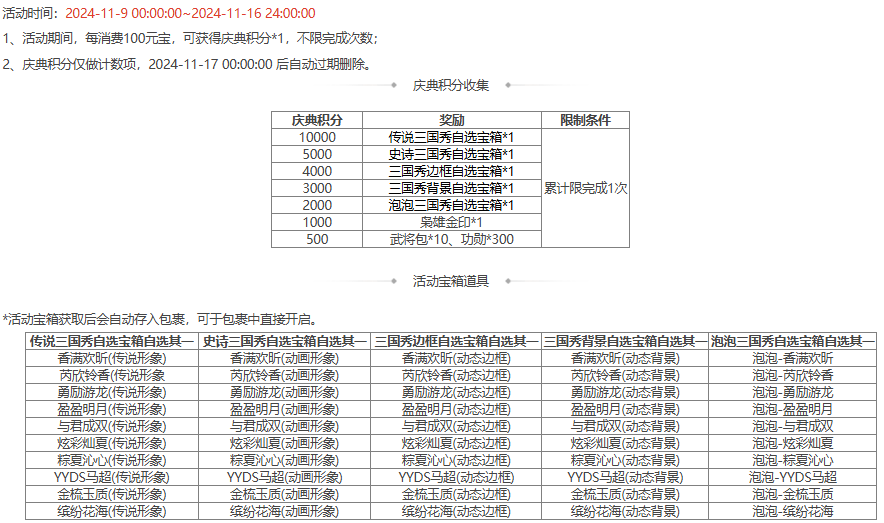 活动时间:2024-11-9 00:00:00~2024-11-18 24:00:00