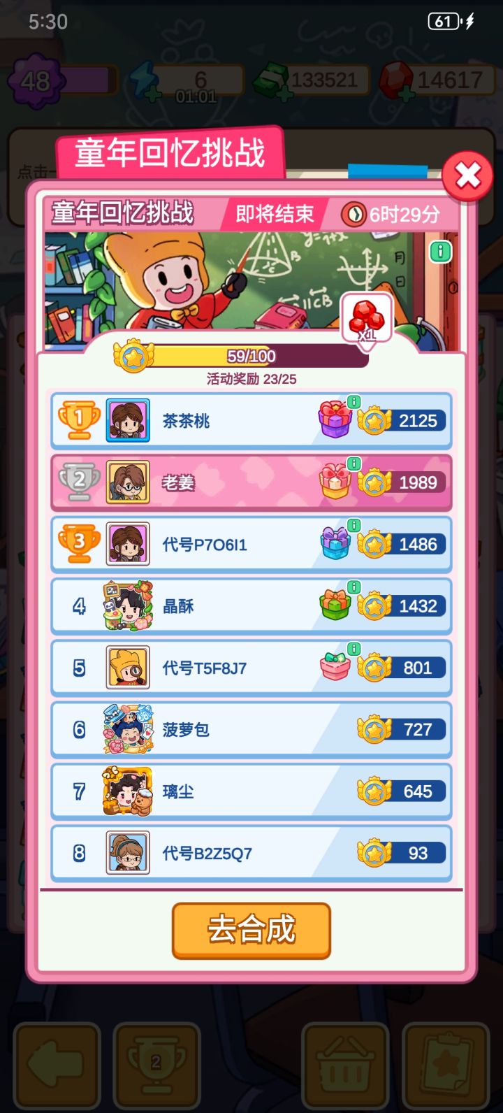 既然是个程序逻辑,那一定会有策划难以想象到场景和应对策略。比如:策略1,“最后一小时狂肝法”,已测试,确实概率会高一些,不过为了个游戏到底值不值得这么累呢。策略2,主棋盘用剪刀去获得绿水桶或者银行案件气泡,借有效钻石的消耗获得大量活动体力,实测也好像有效,但感觉机器人也肝得很快。策略3,只追求第二,养肝护肝,合成10级博士学位后不点,游戏结束前看情况能不能卖掉,多赚3~5个410块钱也很香。